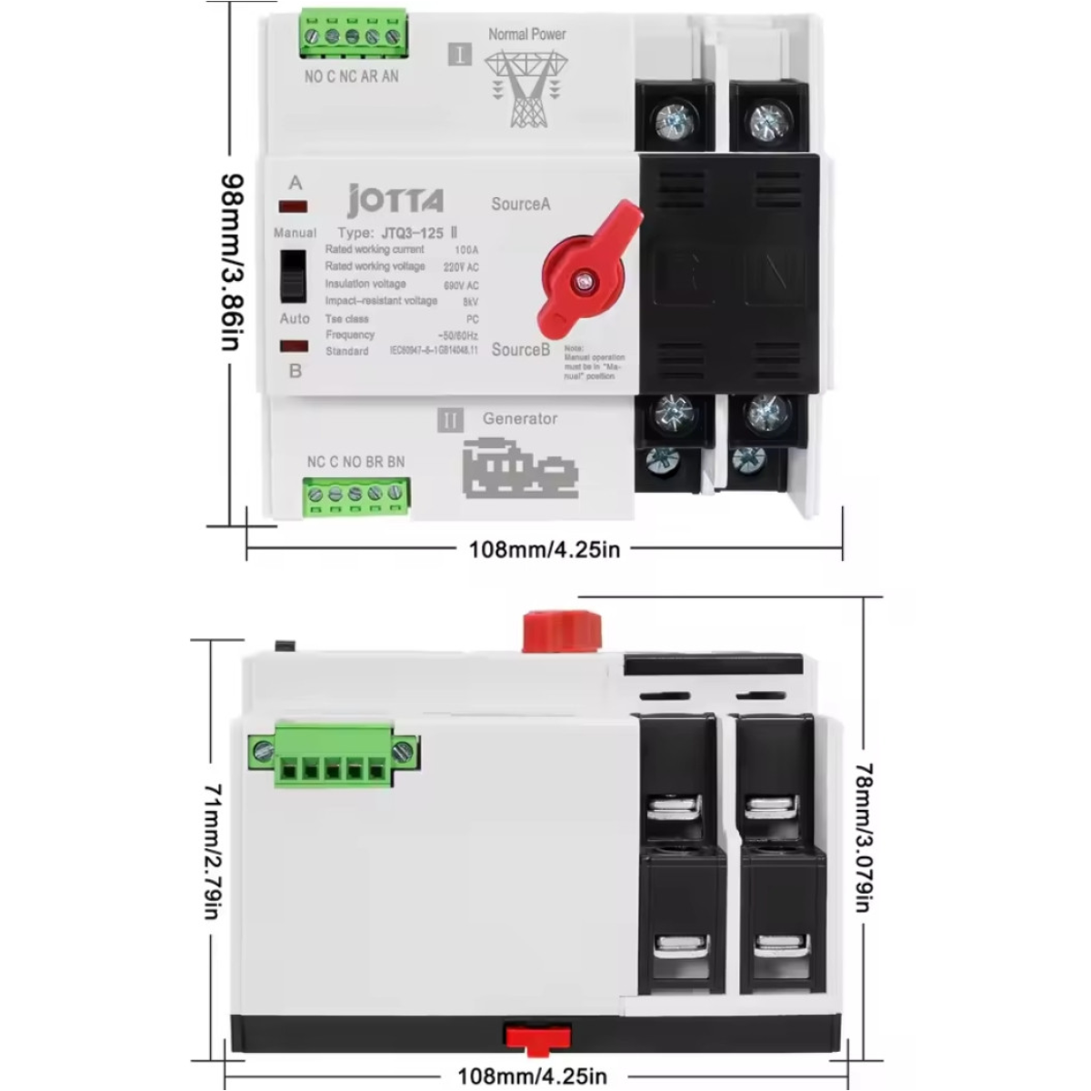 АВР (Автомат введення резерву)Jotta W2R-2P перемикач 125A